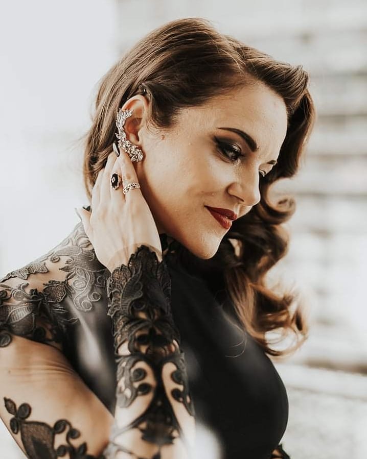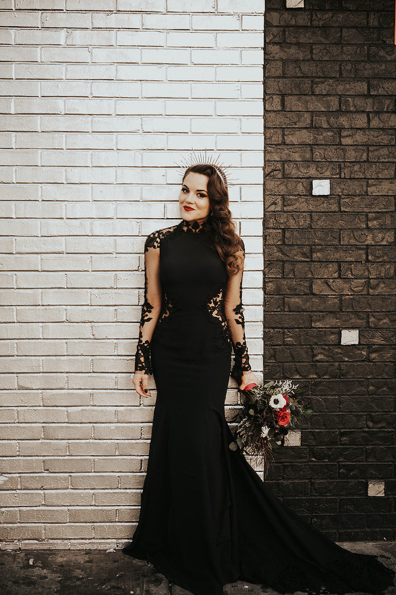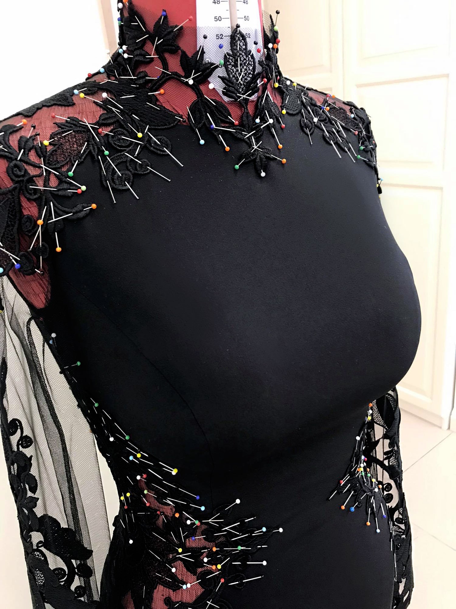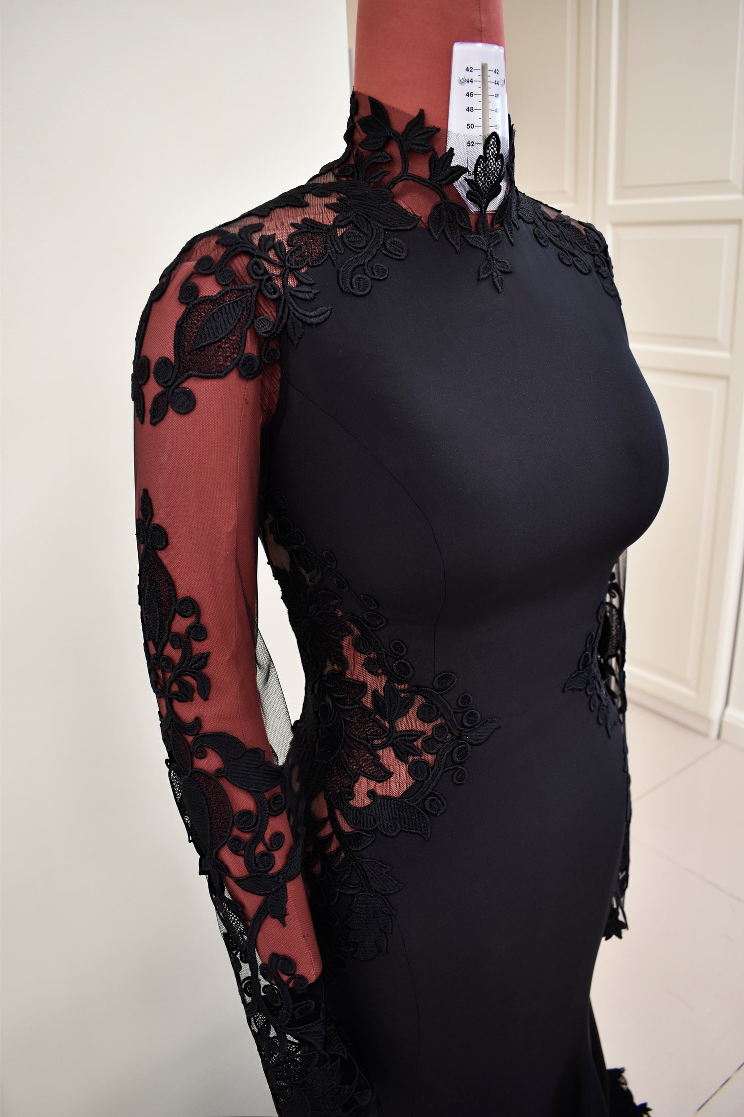The lace details create an amazing dramatic look of the dress which will turn heads!