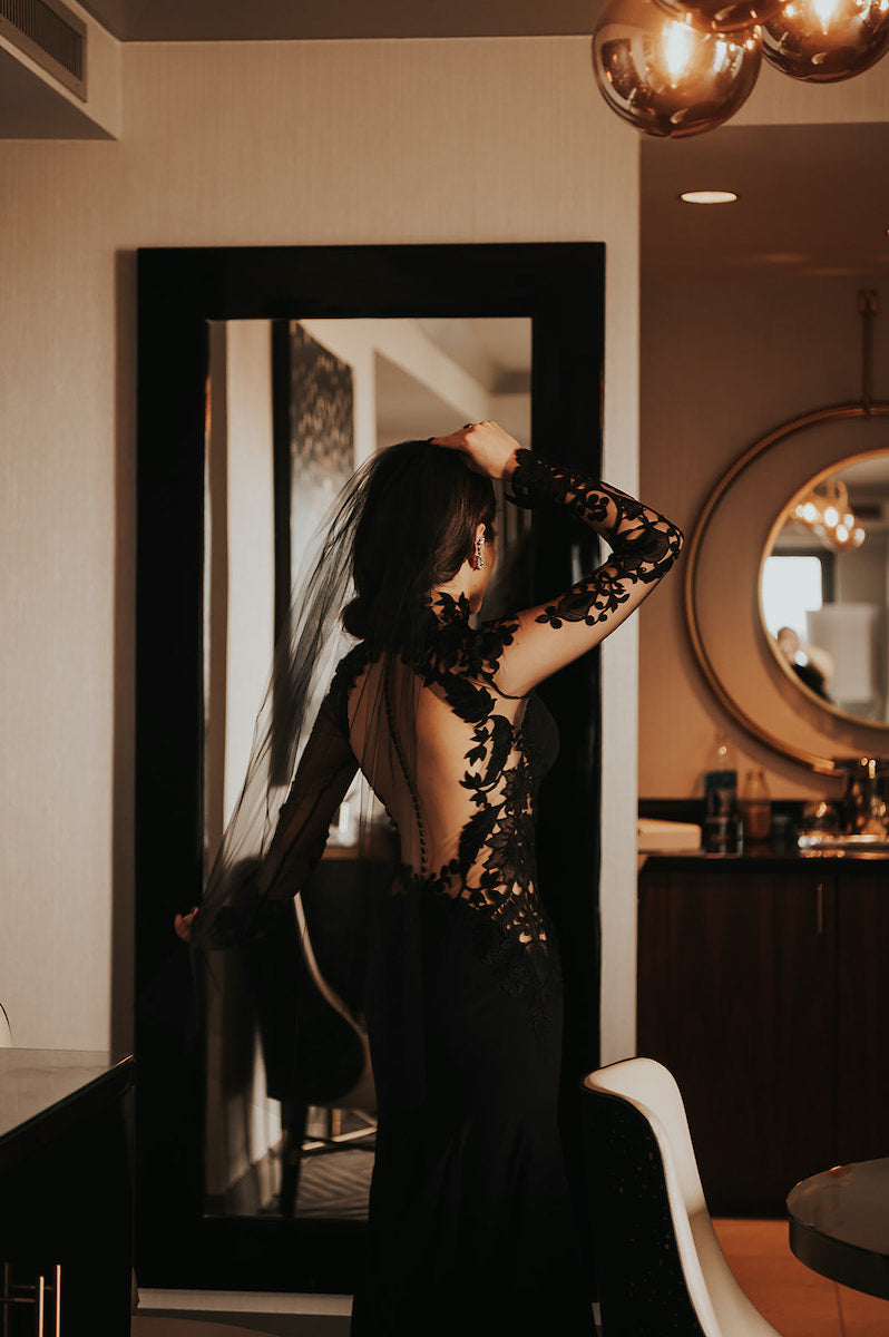 The wedding dress is professionally constructed and tailored in our European couture atelier according to your personal measurements.