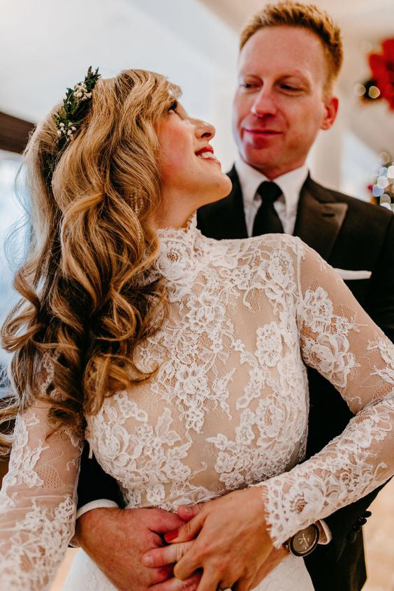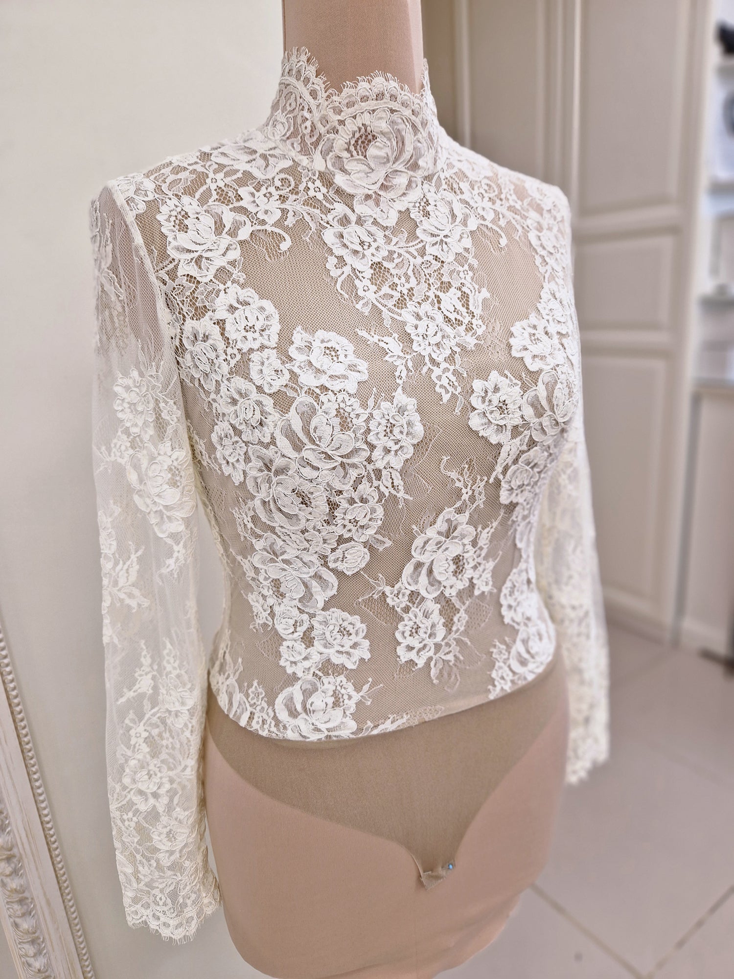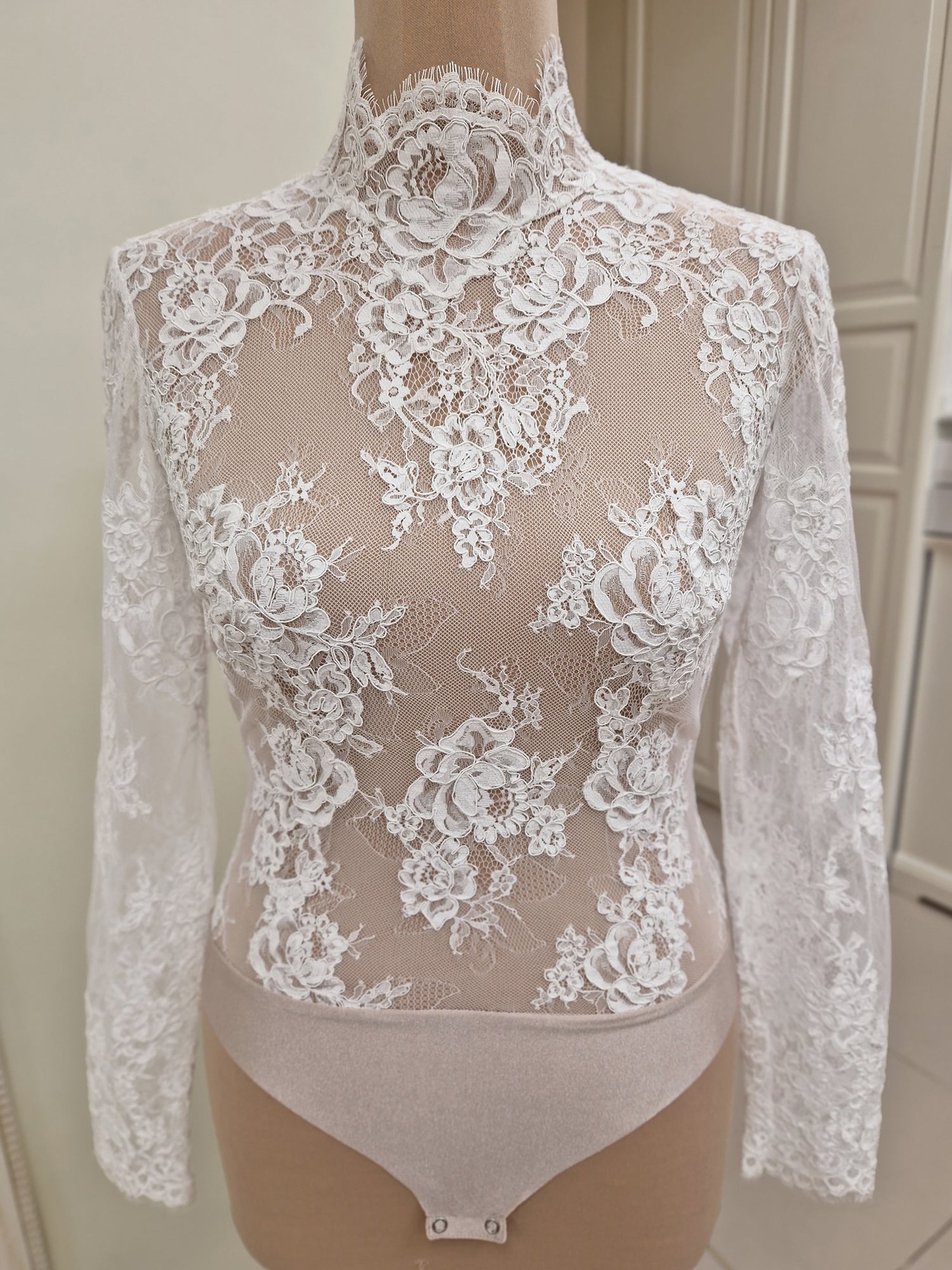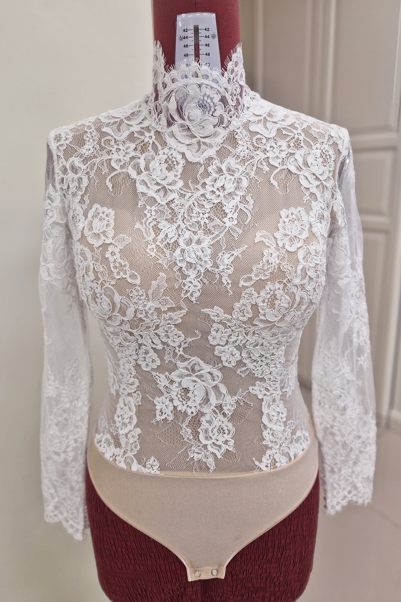Lace Wedding Bodysuit with Turtleneck | Mesh lining