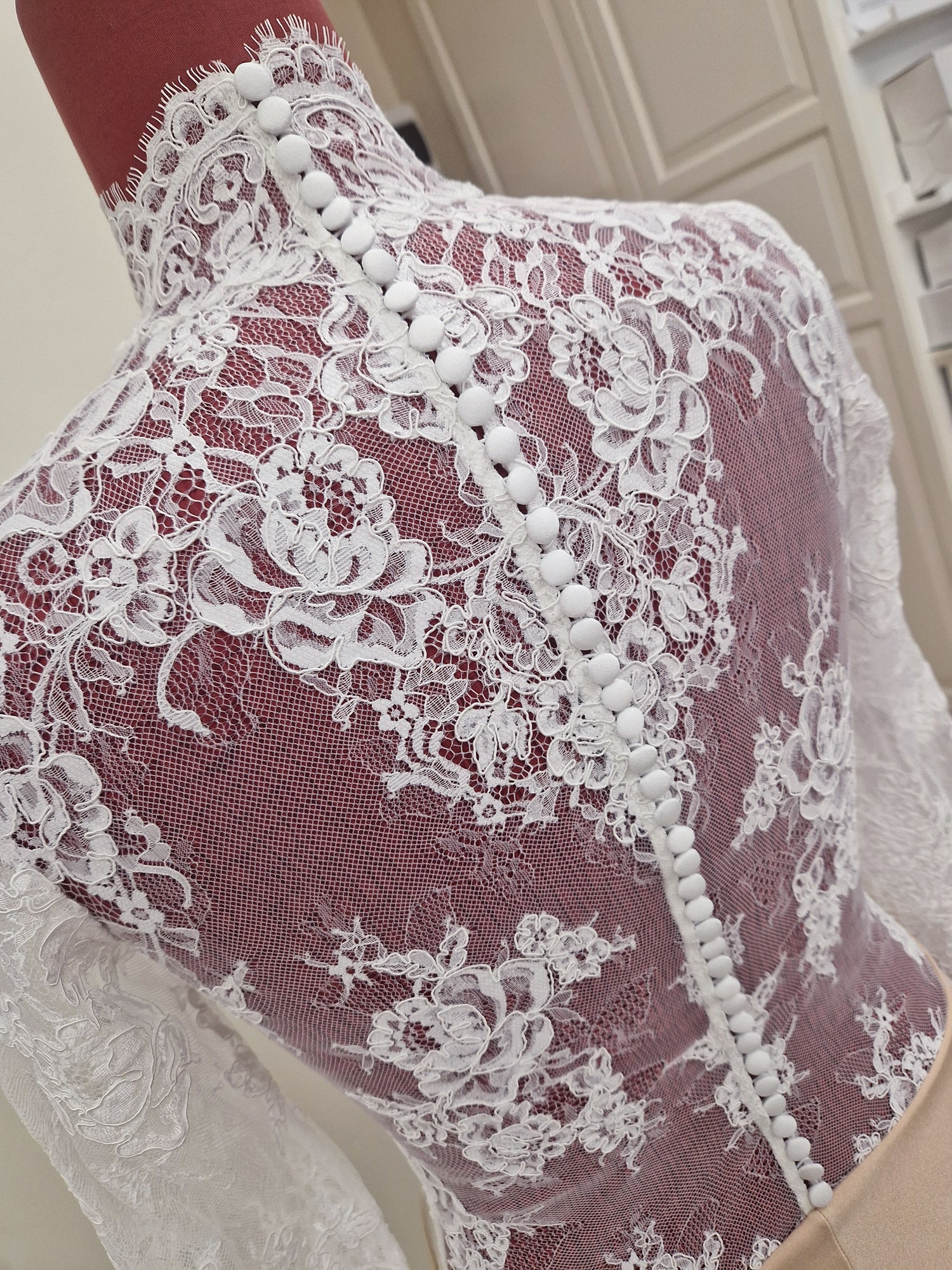 Every garment in our shop is created with a great precision in the professional environment of our European couture atelier. We are proud to create gowns of a highest quality which is compatible with the most luxurious and expensive wedding brands in the world. Each wedding dress is impeccably tailored, showcasing a flattering fit, perfectly executed hand embroideries, shimmering embellishments and beautiful details.