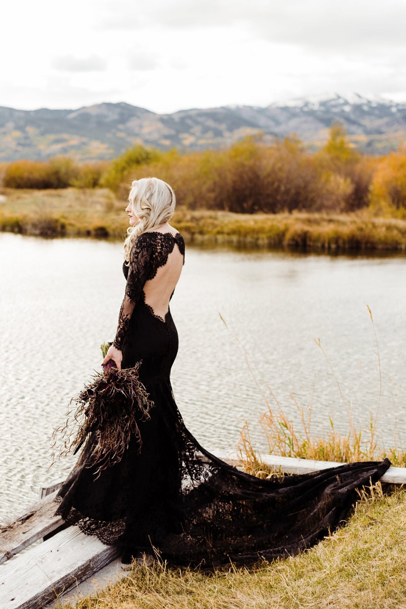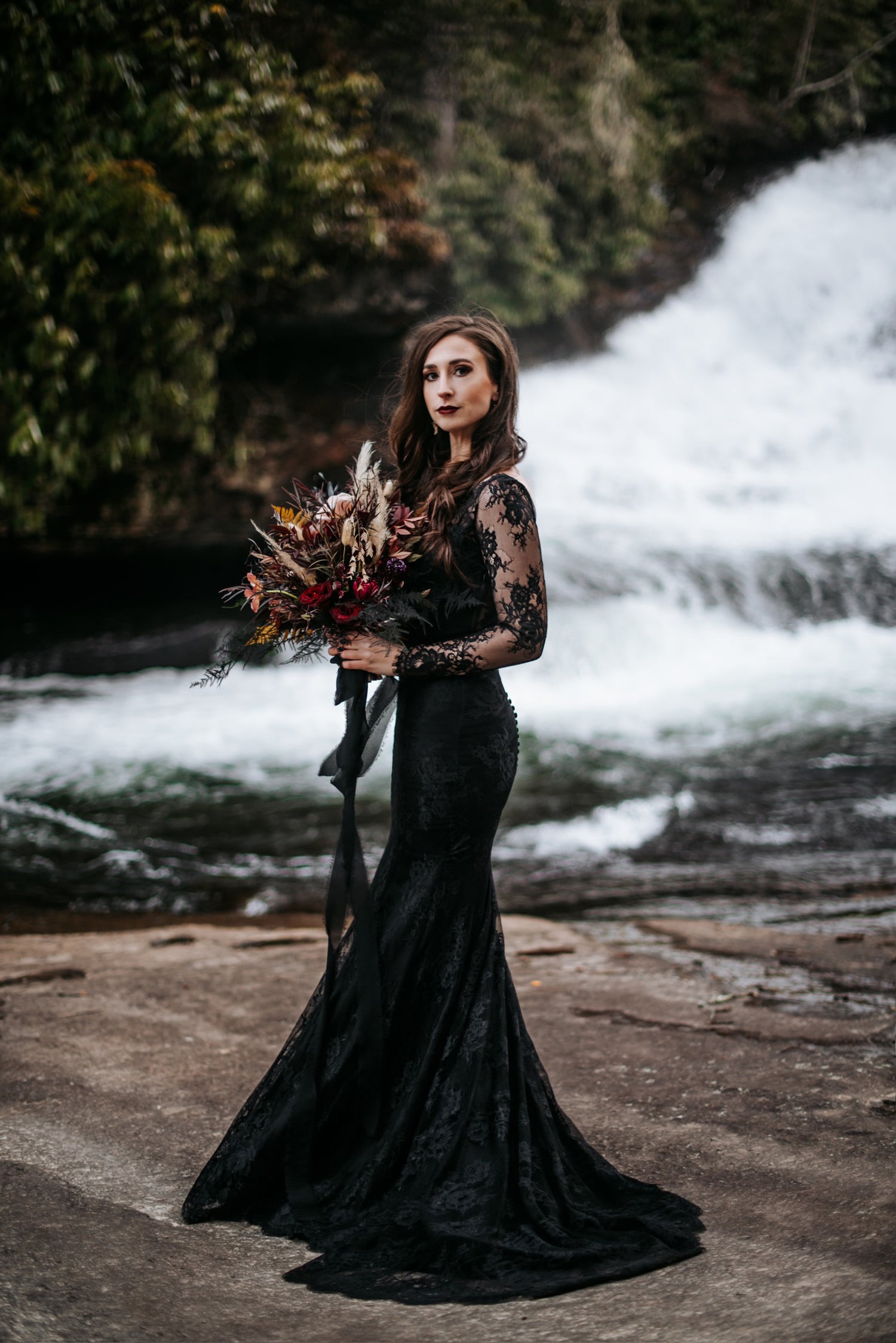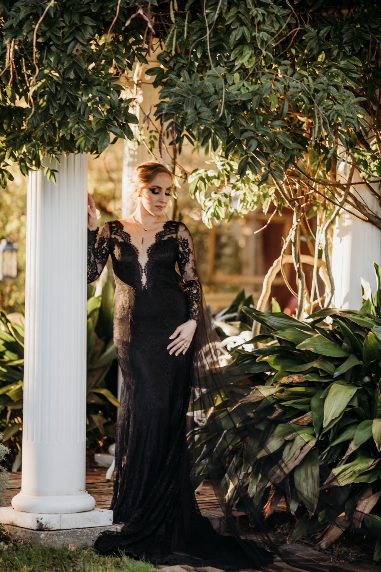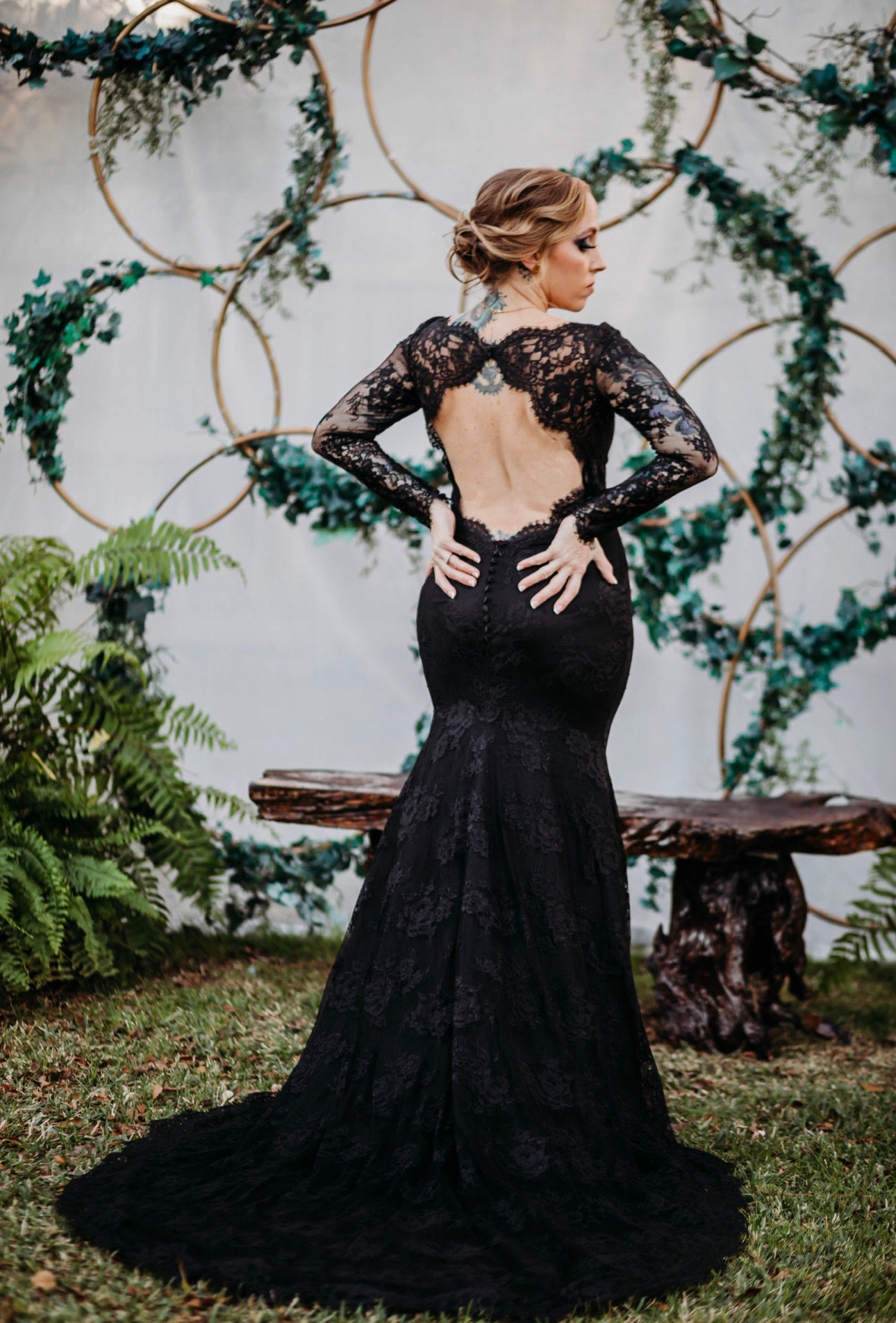 Black Lace Wedding Dress | Verona in Chantilly lace | Deep Plunging Neckline