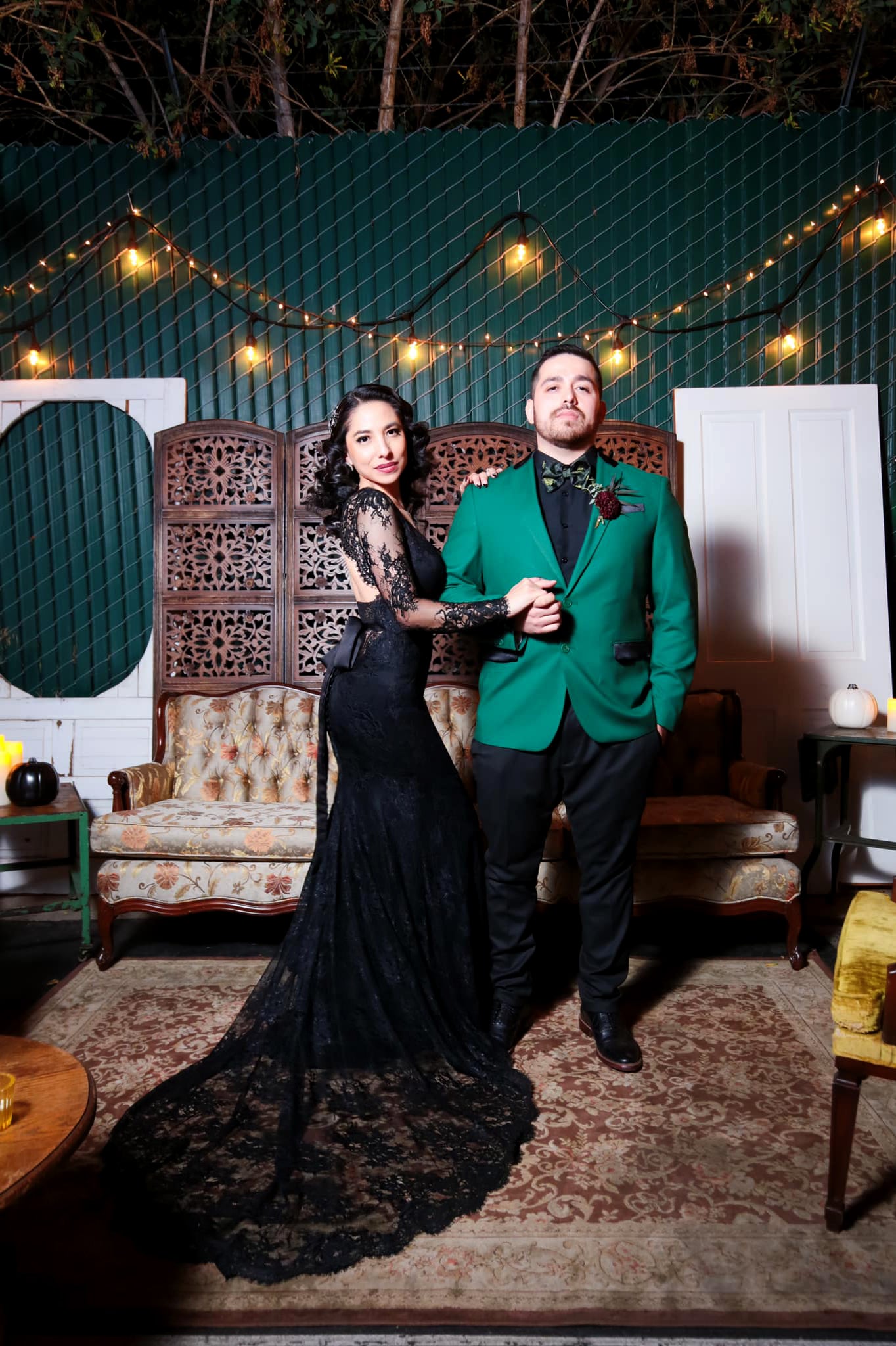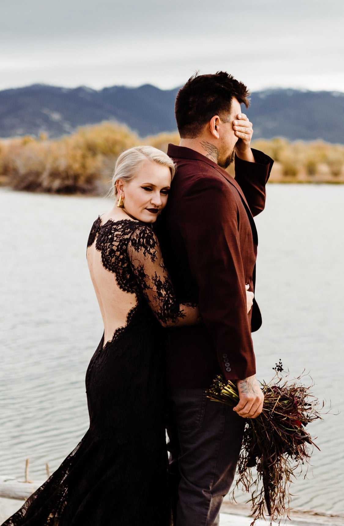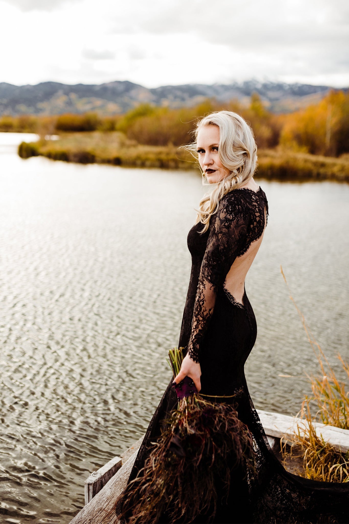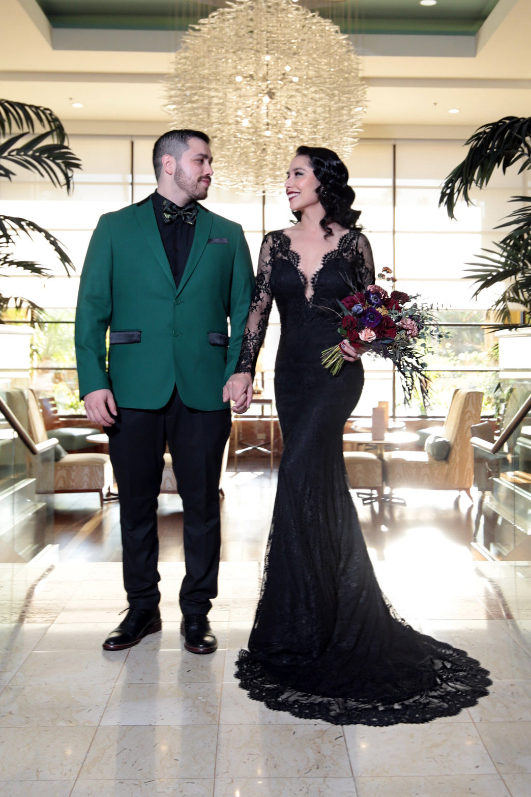 Black Lace Wedding Dress | Verona in Chantilly lace | Deep Plunging Neckline