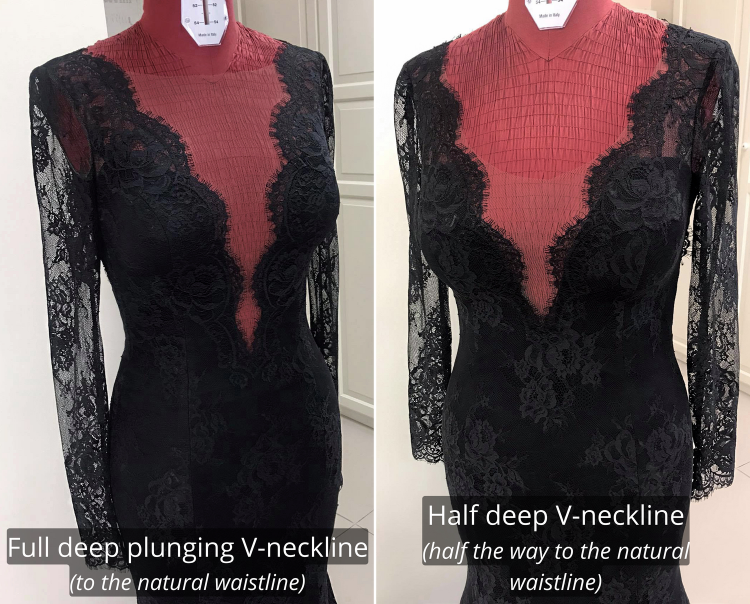You can choose between a full deep V (to the natural waistline) or half V (half the way to the waistline).